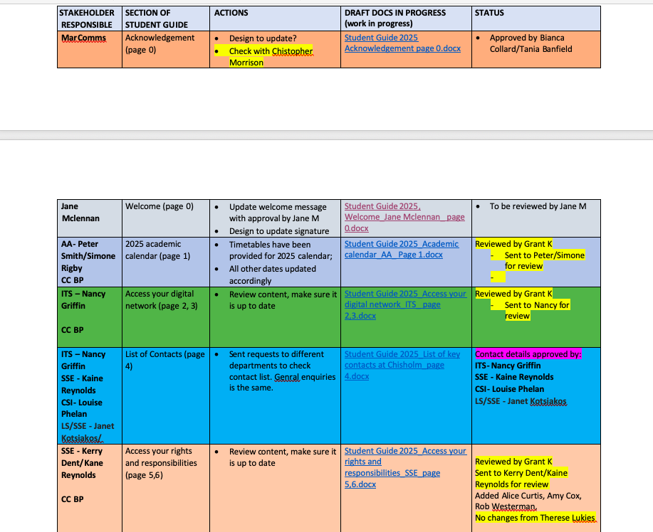 The finalised 2025 Student Guide was published with updated content, compliance sign-offs, and integration into key digital platforms, followed by targeted communications to students and staff to maximize accessibility and engagement.